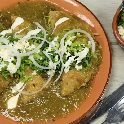 Tortillas con polo, salsa de tomatillo verde,