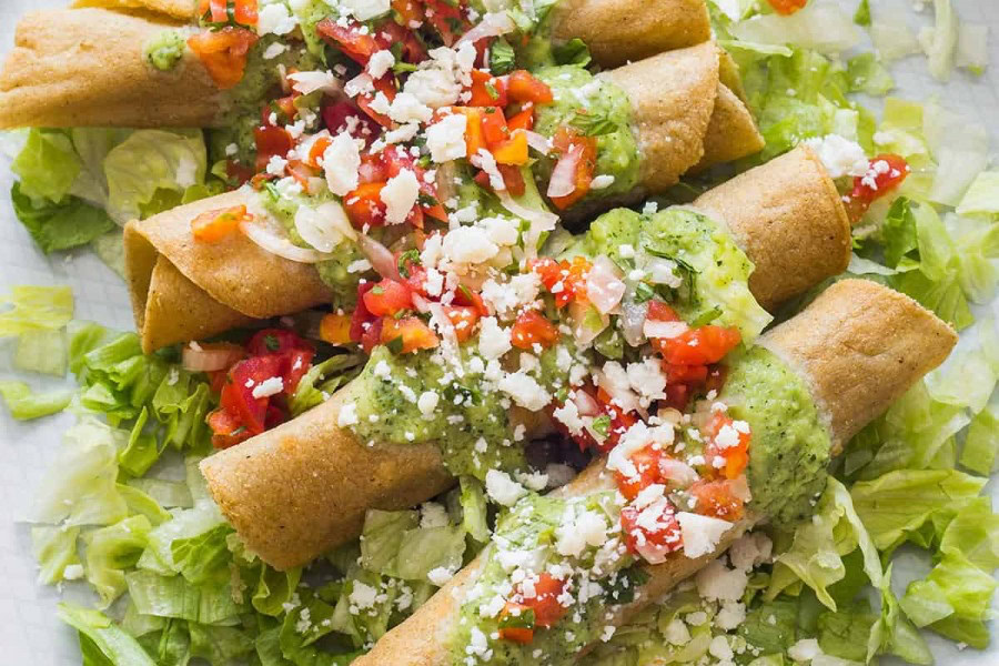 en tacos bañados no seu toque picante, con verduras, lima e cilantro